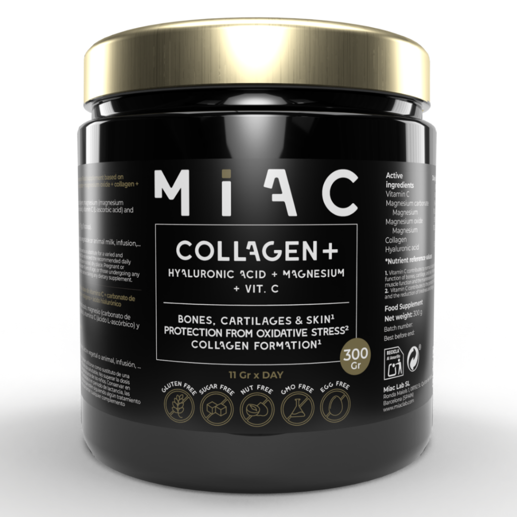 Es la proteína más abundante de nuestro organismo. A medida que envejecemos, la capacidad de sintetizar disminuye y, en determinadas situaciones (sobrepeso, excesiva actividad deportiva,…), se acelera el desgaste. A partir de los 30 años los niveles de colágeno descienden y llegan las líneas de expresión, las arrugas y la falta de elasticidad. El colágeno, además, no tiene sólo una función estética pues es el soporte estructural del organismo, por lo que es indispensable para tu salud. Si se combina con vitamina C, magnesio o ácido hialurónico, el colágeno es genial para potenciar la salud de tus articulaciones, tendones, ligamentos, uñas y cabello.